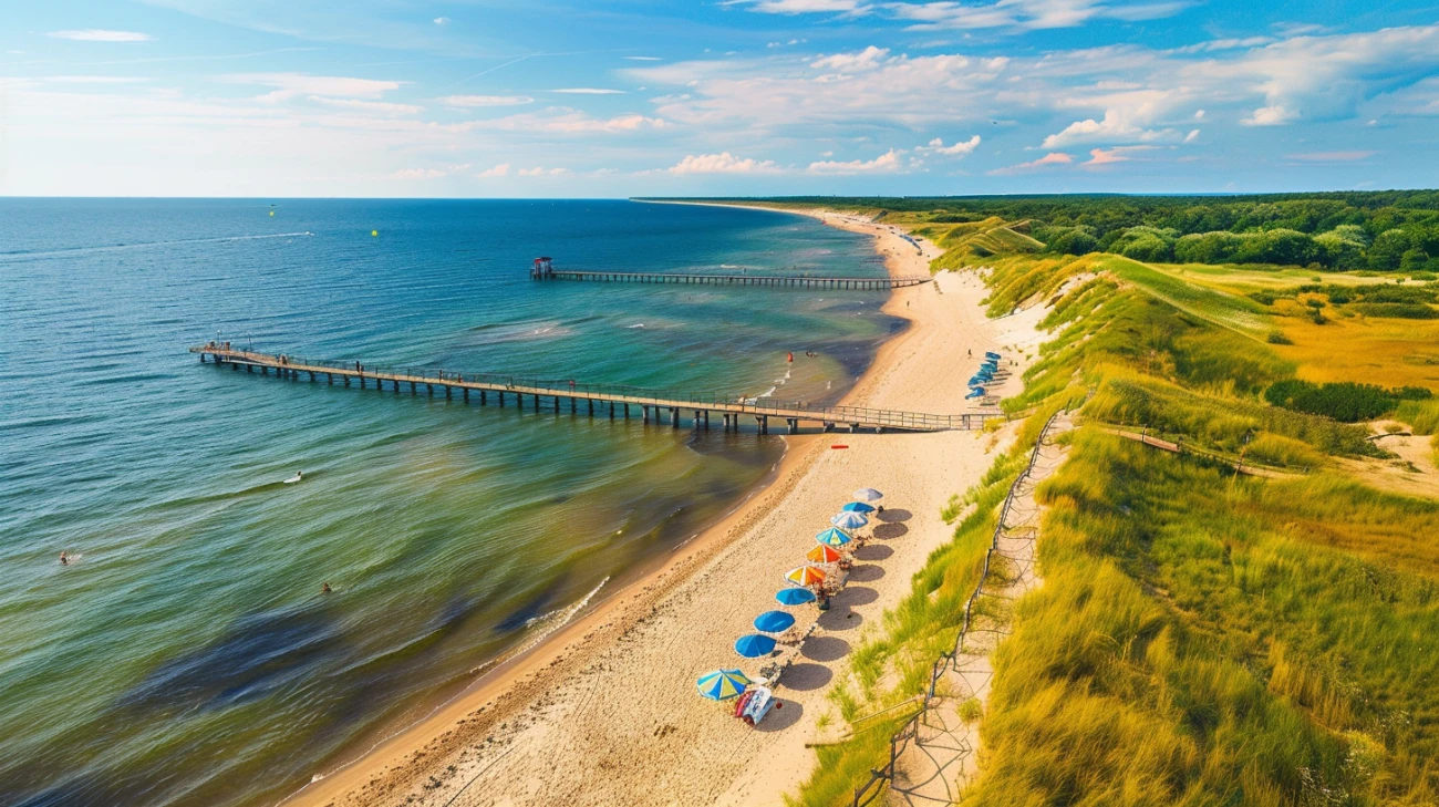 - Długie, piaszczyste plaże, idealne do sportów wodnych
